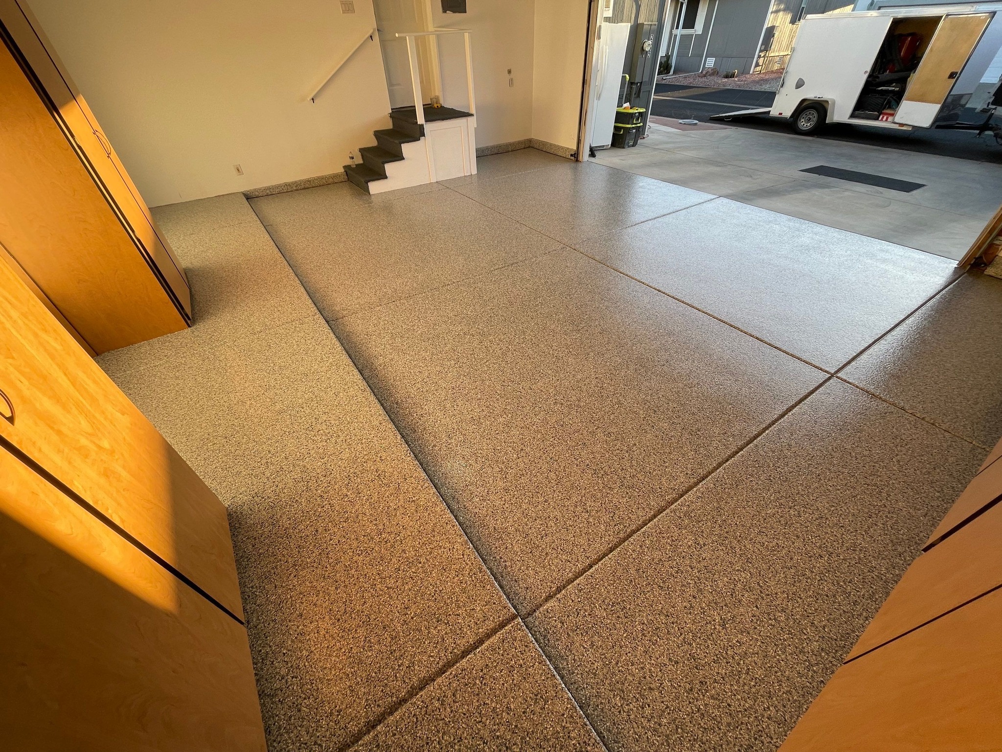 We utilize industry-grade polyurea coating for the highest quality product and installation to create a durable, slip-resistant surface that’s built to brave the elements and withstand several methods of damage and decay. From harmful UV rays brought on by the outdoors, and damaging debris like dirt and bacteria, to tire tracks and oil/chemical leaks, or even damage resulting from heavy equipment or storage, a concrete coating ensures your garage surface is protected from stains, cracks, and heavy foot traffic. As a result, you can rest assured your garage is transformed into a safe and durable space regardless of how you plan to use it.