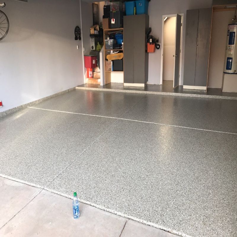 Our chip concrete floor coatings are an effective way to upgrade your home, office, showroom, garage floor, or kennel space. The multi-layer design and sealed topcoat stand up to even the busiest offices with ease.